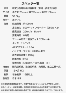 初の特定小型に対応した四輪の登場です。キックボード型と比べて圧倒的な安定感があり、普段の買い物から街乗り、ちょっとしたツーリングまで幅広い用途でご利用頂けます。